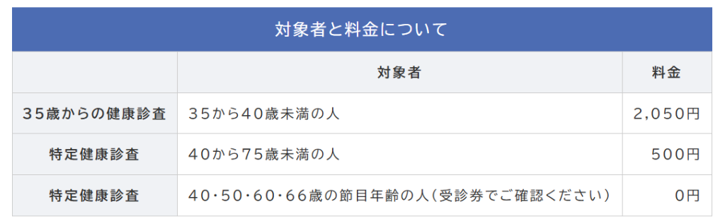 健診料金と対象者および検査内容
